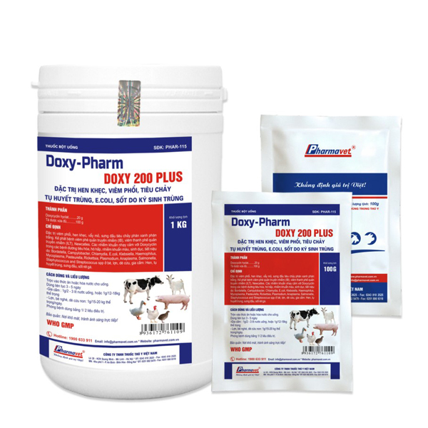 Kết hợp cho uống với Doxy-pharm (1 g/2 – 4 lít nước uống)