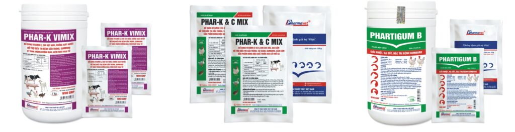 Kết hợp cho uống 5 ngày Phar-K vimix hoặc Phar-K&C mix (1 g/lít nước uống) để cầm máu; Phartigum B (2 g/lít nước uống) để hạ sốt.