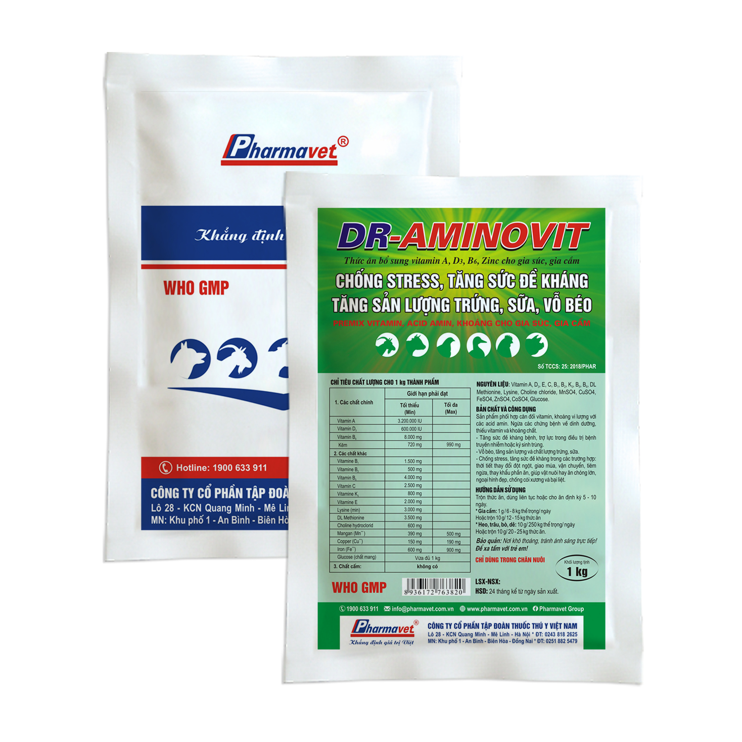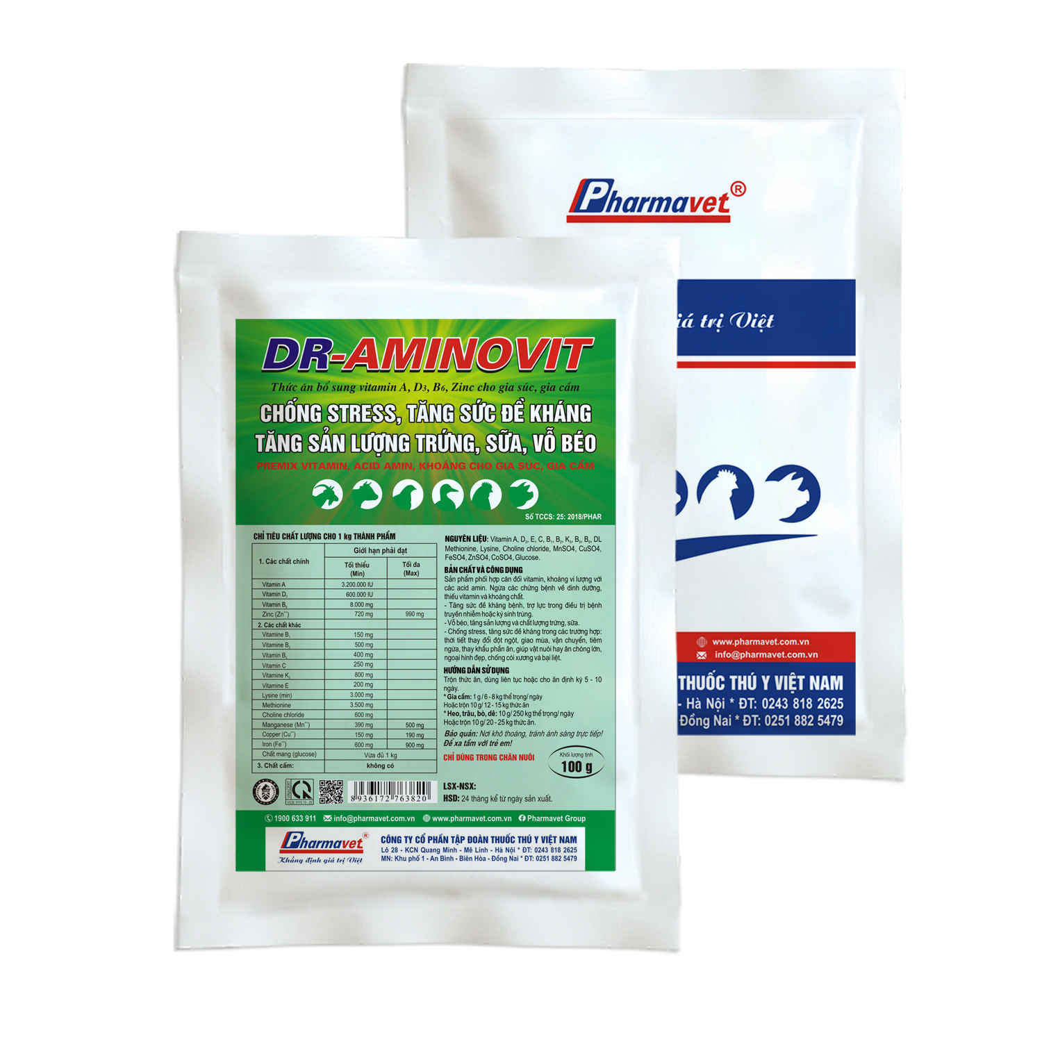 Vitamin B1, B2, B5, C, K3, E, Lysin (min), DL Methionine, Choline hydroclorid, Mangan (Mn++), Copper ( CU++), Iron (Fe++)