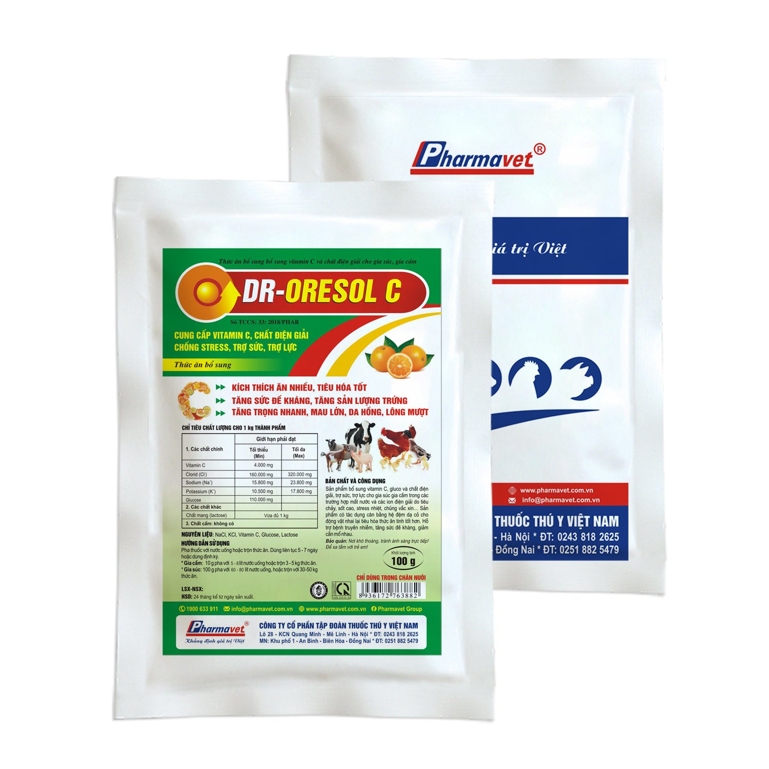 Sản phẩm bổ sung vitamin C, gluco và chất điện giải, trợ sức, trợ lực cho gia súc gia cầm trong các trường hợp mất nước và các ion điện giải do tiêu chảy, sốt cao, stress nhiệt, chủng vắc xin… Sản phẩm có tác dụng cân bằng hệ đệm dạ cỏ cho động vật nhai lại tiêu hóa thức ăn tinh tốt hơn. Hỗ trợ bệnh truyền nhiễm, tăng sức đề kháng, giảm cắn mổ nhau.