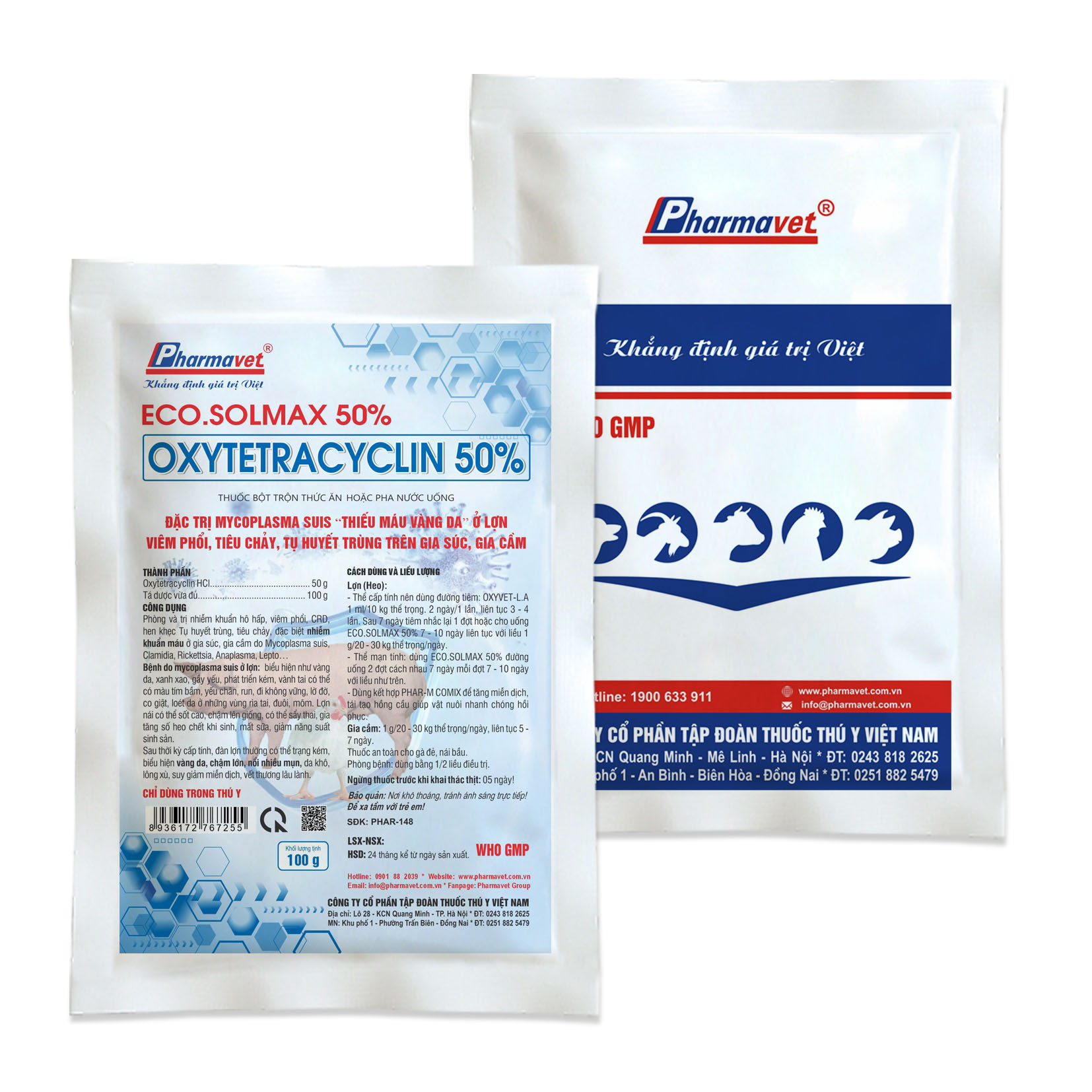 – Thể cấp tính nên dùng đường tiêm: OXYVET-L.A 1 ml/10 kg thể trọng. 2 ngày/1 lần, liên tục 3 – 4 lần. Sau 7 ngày tiêm nhắc lại 1 đợt hoặc cho uống ECO.SOLMAX 50% 7 – 10 ngày liên tục với liều 1 g/20 – 30 kg thể trọng/ngày.
