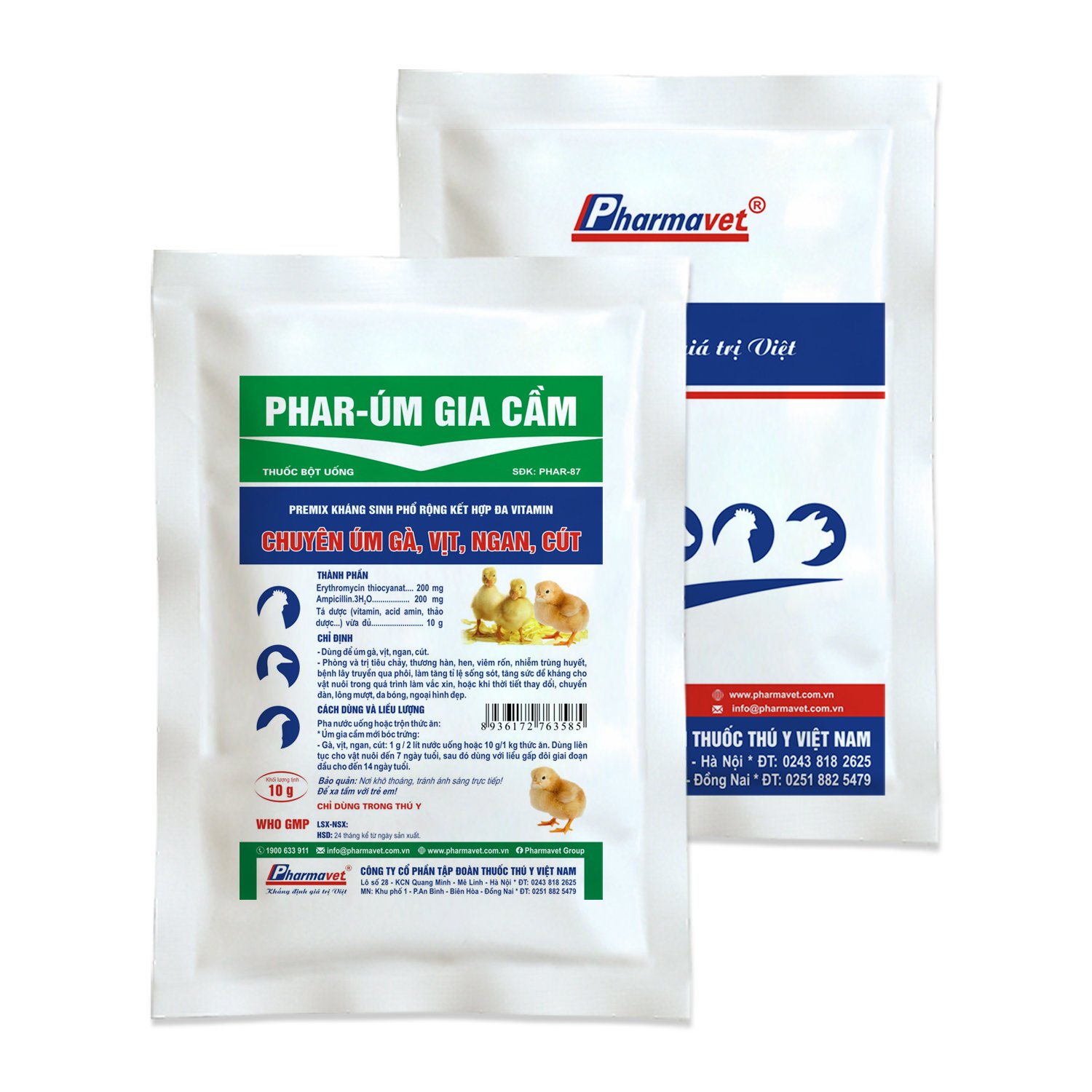 – Prevent and treat diarrhea, typhoid, asthma, umbilical inflammation, sepsis, diseases transmitted through embryos, increase survival rate, increase resistance of animals during the vaccination process, or when the weather change, change herd, smooth hair, shiny skin, beautiful appearance.
