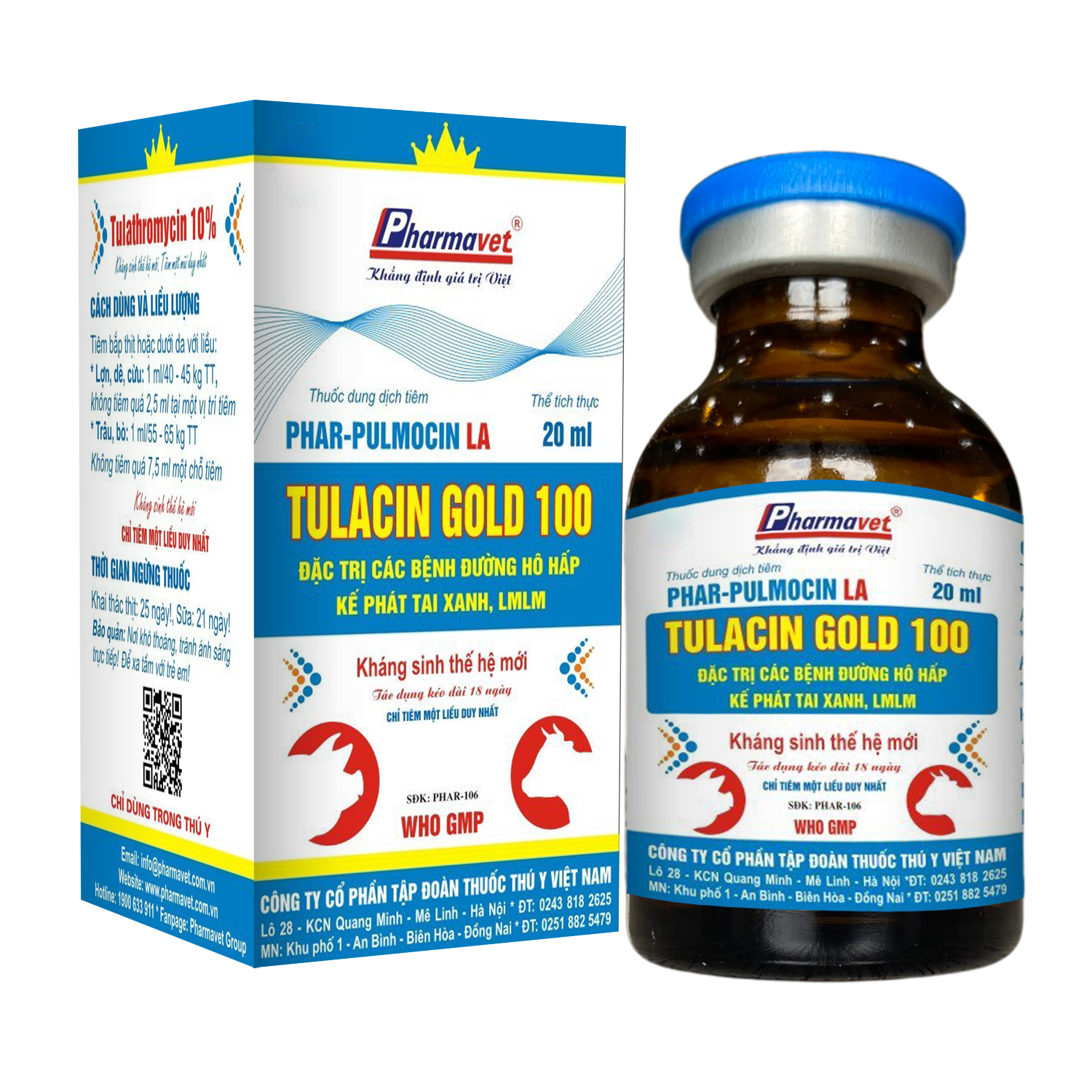 Đặc trị viêm phổi, hen suyễn, viêm hóa mủ, phổi dính sườn, phó thương hàn, tụ huyết trùng, hồng lỵ, E.coli sưng phù đầu, viêm ruột ỉa chảy, viêm vú, viêm tử cung, bệnh kế phát, tai xanh, sốt đỏ (PRRS), lở mồm long móng do nhiều loại vi trùng gây bệnh.